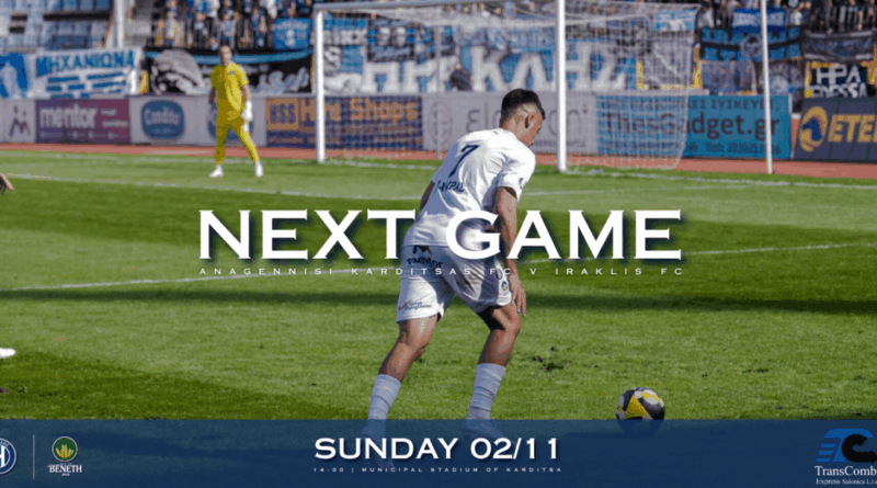 Ορίστηκε για την Κυριακή (2/11) στις 14:00 ο αγώνας της ομάδας μας με αντίπαλο την Αναγέννηση Καρδίτσας, στο Δημοτικό Στάδιο Καρδίτσας, στο πλαίσιο της επόμενης αγωνιστικής του πρωταθλήματος της Super League 2.
